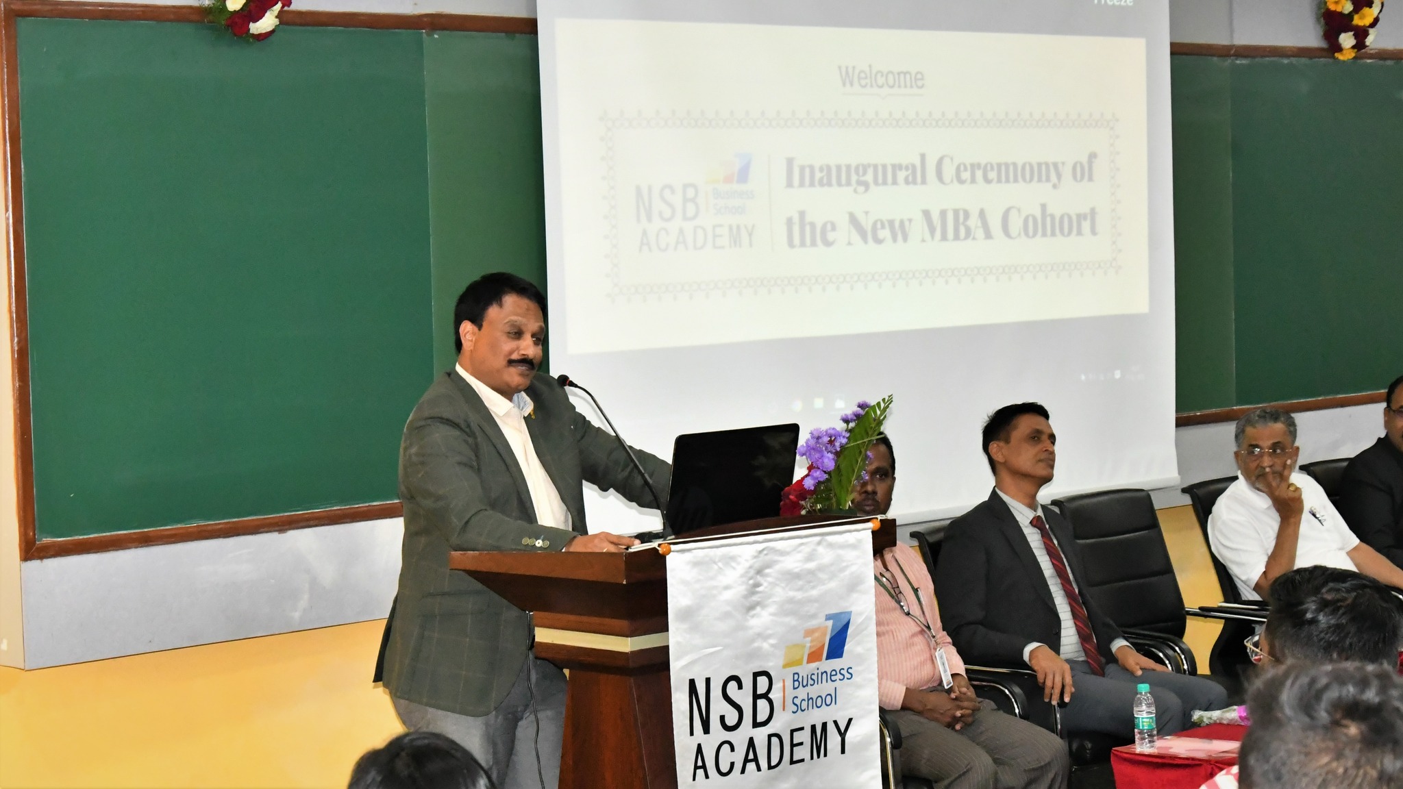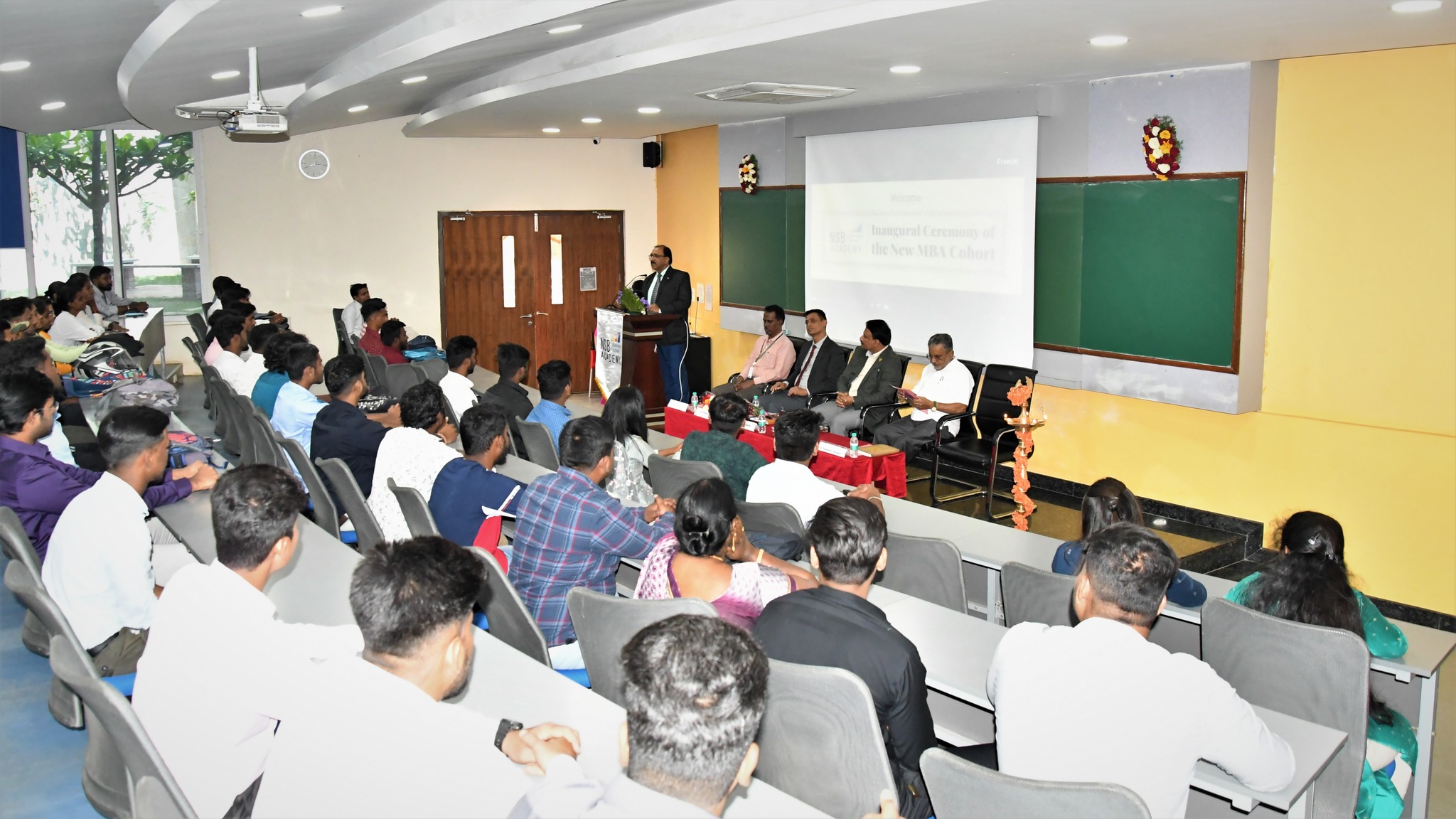 NSB Academy proudly inaugurated the new batch of PGCET MBA students of cohort 2022-24 on 17th February, 2023. The event was graced by dignitaries like Dr. P S Mahesh, Director of CPDO & TI Hessargatta and Joint Commissioner of Ministry of Agriculture, Govt of India, Dr. S.R. Sridharamurthy, President-NSB, Prof. D.R. Nagaraj, Member BOG-NSB, Dr. P. Ganesan, Director-NSB and Dr.Nandeesh V. Hiremath who inspired the gathering with their motivational words.