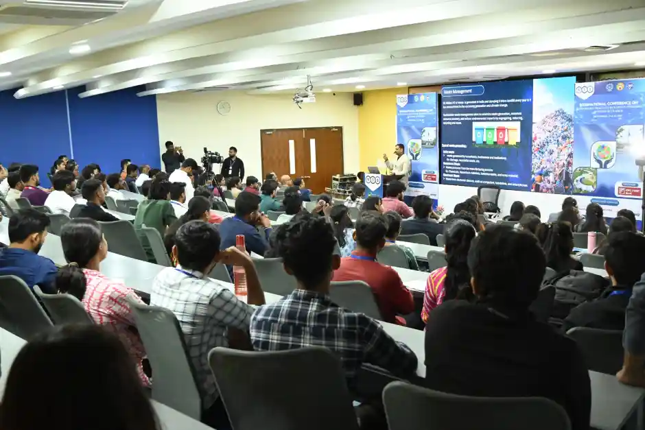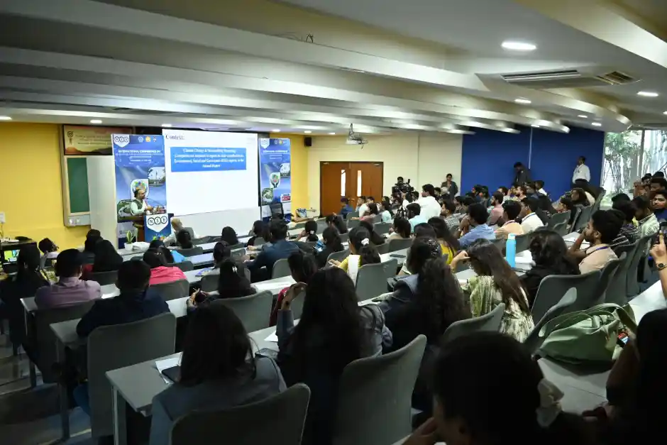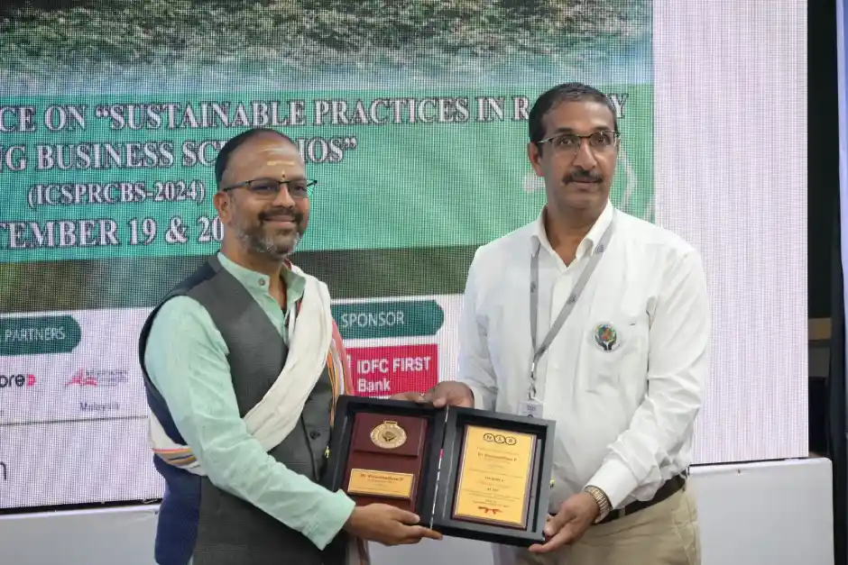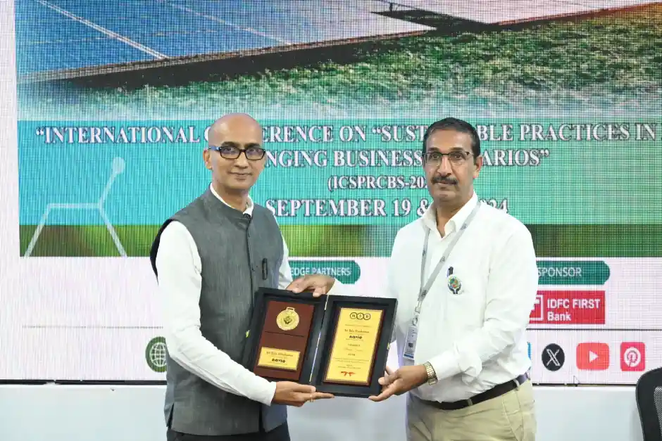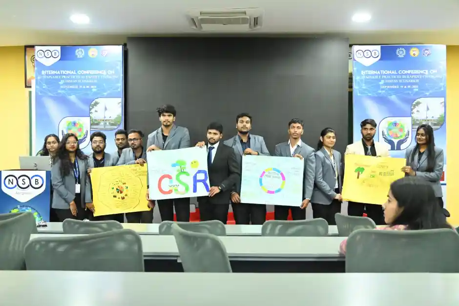 NSB Bangalore brought the International Conference on “Sustainable Practices in Rapidly Changing Business Scenarios” to a successful close on September 20, 2024, with a series of insightful and impactful plenary sessions. The day featured talks by Mr. Harsha Malligere, General Manager EHS & Sustainability at Page Industries Ltd. (Jockey), Mr. Biju Sivakumar, CEO of Navio Shipping, Mumbai, and Dr. Viswanathan P, CEO of Vyoma Linguistic Labs Foundation, Bangalore. Additionally, students showcased their talents through a skit, highlighting the importance of sustainability in business practices.