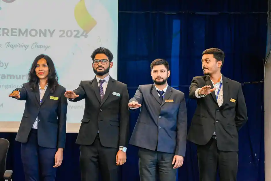 The event featured the ceremonial oath-taking by the Hon’ble director Dr. Srinidhi K.Parthasarathi , badge presentation by dignitaries and inspiring speeches by the Hon’ble President Dr. S.R. Sridharamurthy and Prof. Abishek Santhosh Raj , emphasizing leadership, integrity and service. With great enthusiasm and pride, the council members pledged to uphold the institution's values and foster a vibrant and inclusive campus environment, embarking on their journey of impactful leadership.