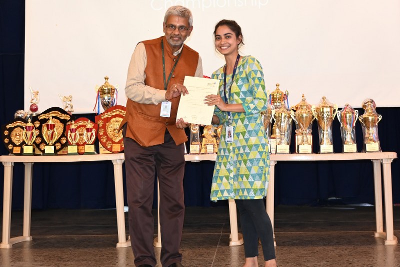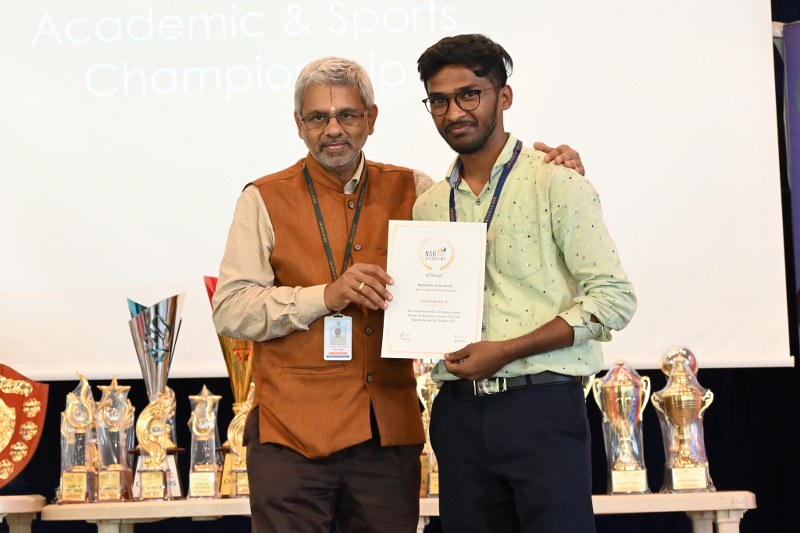 The fact our many students achieved 100% attendance in both the First semester and the MIP course is a remarkable feat and demonstrates the exceptional commitment of these students to their studies. This level of dedication not only reflects their academic excellence but also their readiness for future challenges. The Director of NSB Academy Dr. Srinidhi K Parthasarathi distributed the certificates and awards to the winners.