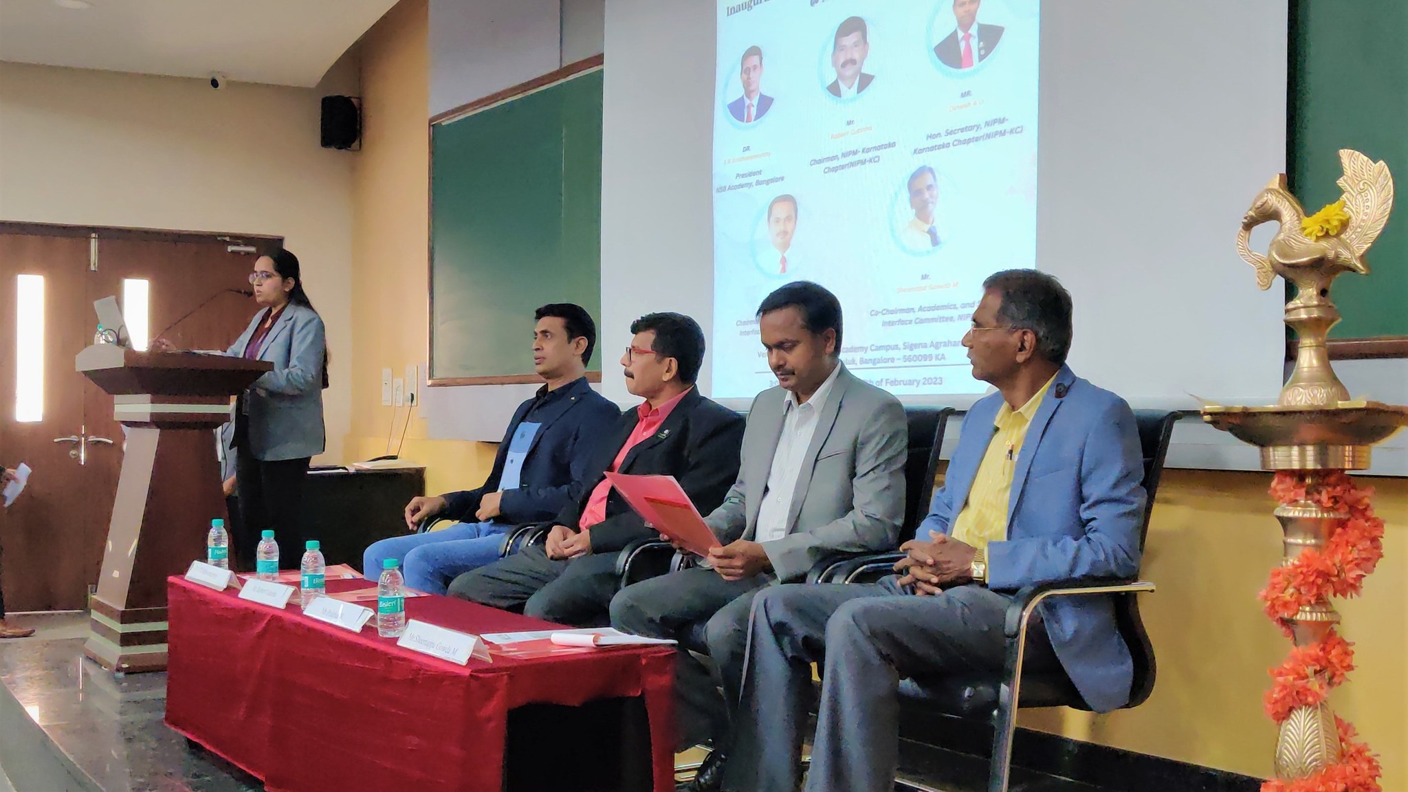 The NSB-NIPM Student Chapter was inaugurated on February 07, 2023 at the NSB Academy Campus. The program was attended by various guests, including Mr. Robert Cutinha, Chairman of NIPM Karnataka Chapter, and Mr. Prabhu and Mr. Senappa Gowda, both from the NIPM Karnataka Chapter. The event started with a welcome speech by Dr. Ratnakar Mishra, followed by a Presidential Address by Dr. S.R. Sridharamurthy.
