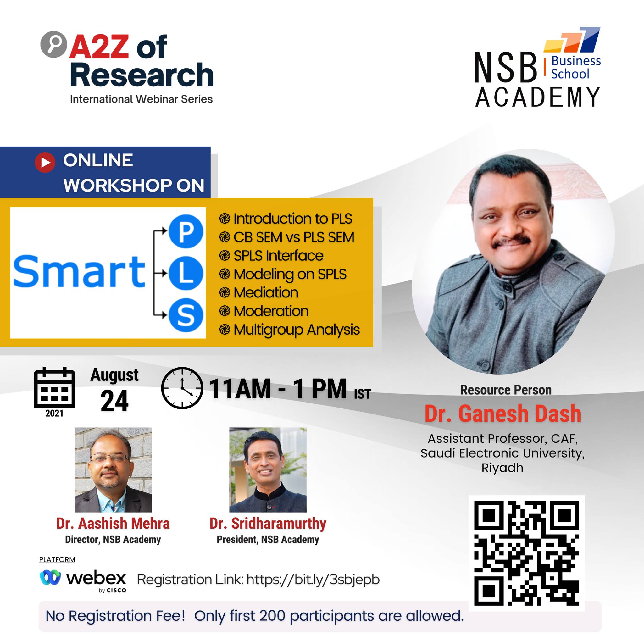 Dear Researcher/Faculty, NSB Academy, Bengaluru is organizing a '๐—ข๐—ป๐—น๐—ถ๐—ป๐—ฒ ๐—ช๐—ผ๐—ฟ๐—ธ๐˜€๐—ต๐—ผ๐—ฝ ๐—ผ๐—ป ๐—ฆ๐—บ๐—ฎ๐—ฟ๐˜๐—ฃ๐—Ÿ๐—ฆ' on ๐Ÿฎ๐Ÿฐ๐˜๐—ต ๐—”๐˜‚๐—ด. ๐Ÿฎ๐Ÿฌ๐Ÿฎ๐Ÿญ, the ๐—ฅ๐—ฒ๐˜€๐—ผ๐˜‚๐—ฟ๐—ฐ๐—ฒ ๐—ฃ๐—ฒ๐—ฟ๐˜€๐—ผ๐—ป for the same will be ๐˜ฟ๐™ง. ๐™‚๐™–๐™ฃ๐™š๐™จ๐™ ๐˜ฟ๐™–๐™จ๐™ from ๐™Ž๐™–๐™ช๐™™๐™ž ๐™€๐™ก๐™š๐™˜๐™ฉ๐™ง๐™ค๐™ฃ๐™ž๐™˜ ๐™๐™ฃ๐™ž๐™ซ๐™š๐™ง๐™จ๐™ž๐™ฉ๐™ฎ, ๐™๐™ž๐™ฎ๐™–๐™™๐™. This Webinar under the tag of ๐—”๐Ÿฎ๐—ญ ๐—ผ๐—ณ ๐—ฅ๐—ฒ๐˜€๐—ฒ๐—ฎ๐—ฟ๐—ฐ๐—ต - ๐—œ๐—ป๐˜๐—ฒ๐—ฟ๐—ป๐—ฎ๐˜๐—ถ๐—ผ๐—ป๐—ฎ๐—น ๐—ช๐—ฒ๐—ฏ๐—ถ๐—ป๐—ฎ๐—ฟ ๐—ฆ๐—ฒ๐—ฟ๐—ถ๐—ฒ๐˜€ @ NSB Academy. Those who are genuinely interested in attending this useful Webinar are requested to kindly book their seat by 'Registering' with the given link below.